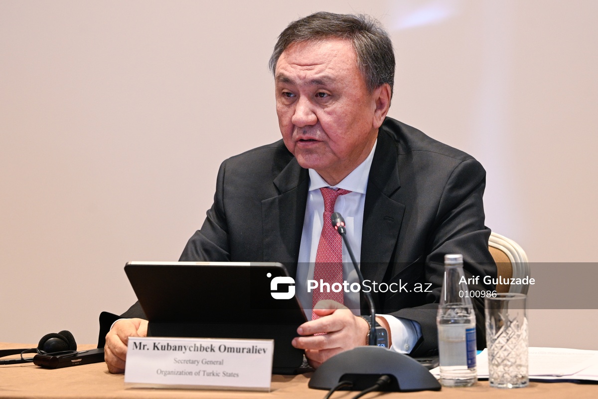 Bakıda keçirilən Türk Dövlətləri Təşkilatının Gömrük Xidməti Rəhbərlərinin iclasında iştirak edən Türk Dövlətləri Təşkilatının (TDT) Baş katibi Kubanıçbek Omuraliyev.