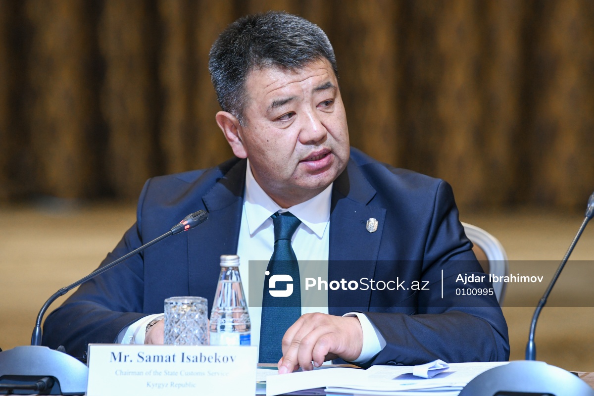 Bakıda keçirilən Türk Dövlətləri Təşkilatının Gömrük Xidməti Rəhbərlərinin iclasında iştirak edən Qırğızıstan Maliyyə Nazirliyi yanında Dövlət Gömrük Xidmətinin sədri Samat İsabekov.