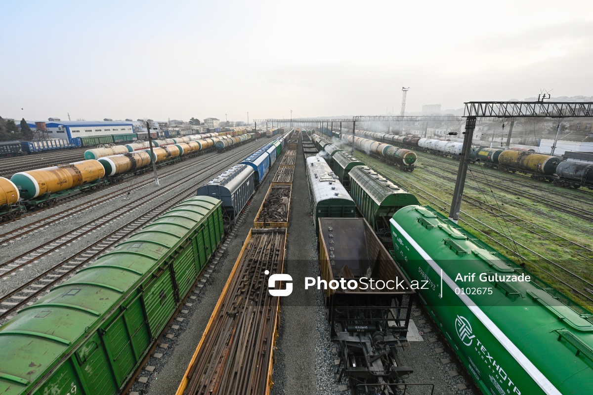 “Azərbaycan Dəmir Yolları” QSC-nin Biləcəri stansiyasında yük çeşidləmə məntəqəsi.