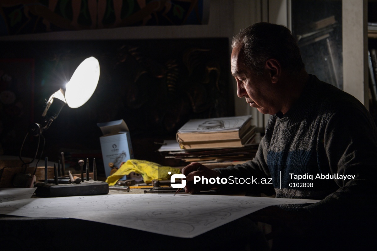 Bakıda metal üzərində döymə sənəti ilə məşğul olan Əzizbala Dadaşov