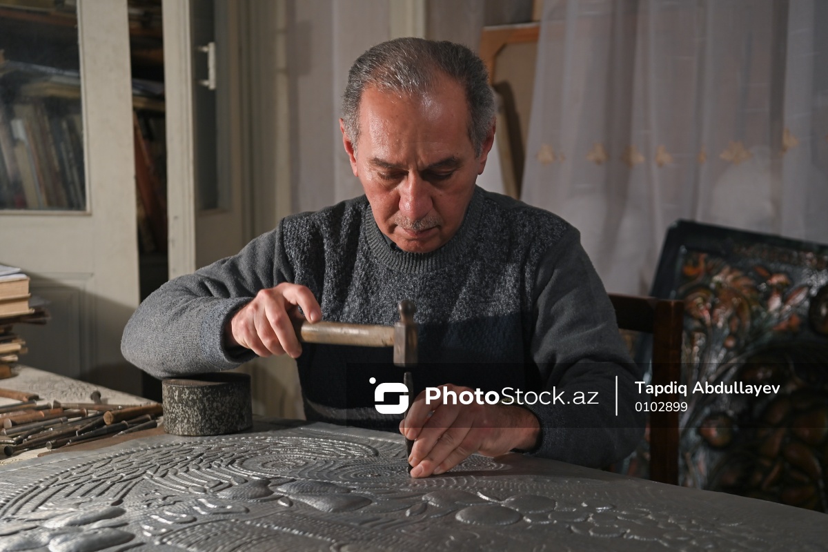 Bakıda metal üzərində döymə sənəti ilə məşğul olan Əzizbala Dadaşov
