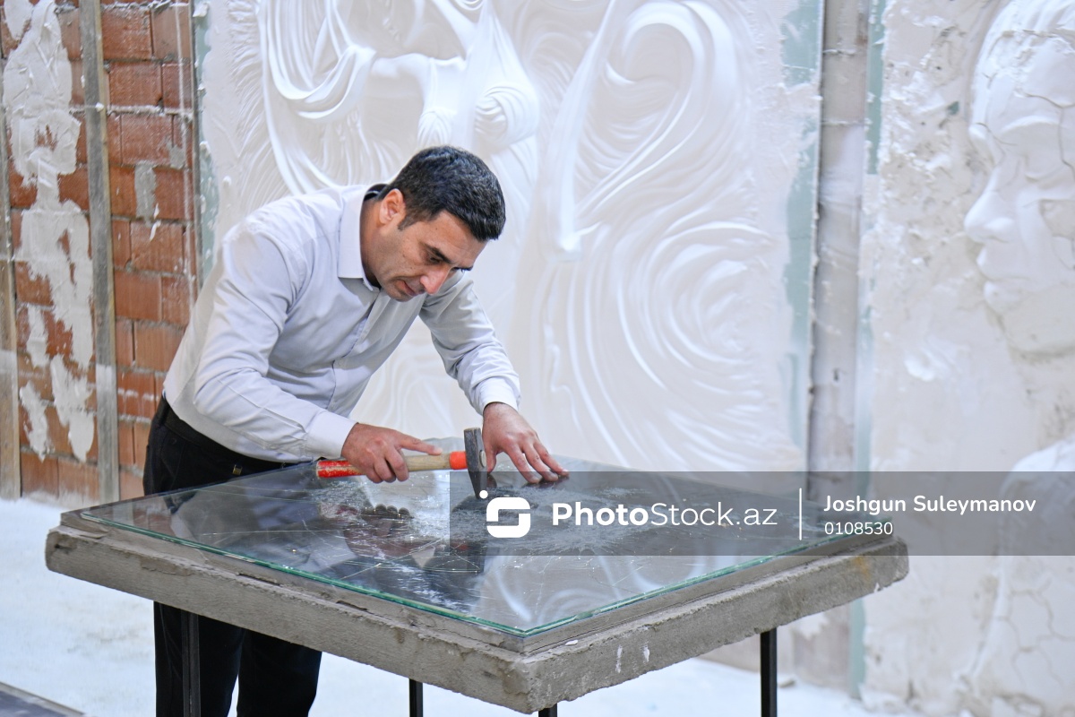 Şüşə sındıraraq portret şəkillər ərsəyə gətirən rəssam Elnur Gülməmmədov