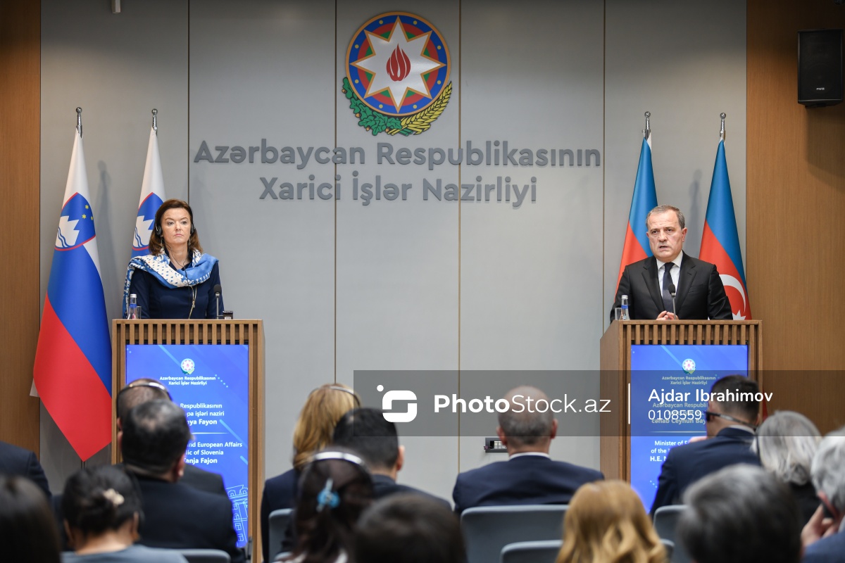 Aprelin 4-də Azərbaycan Respublikasının xarici işlər naziri Ceyhun Bayramov (sağ) və Sloveniya Respublikasının Xarici İşlər və Avropa naziri Tanya Fayonun (sol) birgə mətbuat konfransı keçirilib. Konfrans çərçivəsində Azərbaycanla Sloveniya arasında diplomatik münasibətlər və əməkdaşlıqların müzakirəsi baş tutub.