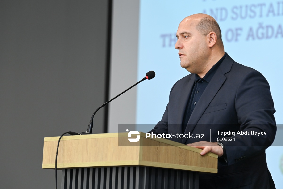 Azərbaycanda akkreditə olunan diplomatik korpus nümayəndələrinin Qarabağ Universiteti ilə tanışlığında iştirak edən Ağdam, Füzuli və Xocavənd rayonlarında Azərbaycan Respublikası Prezidentinin xüsusi nümayəndəsi Emin Hüseynov.