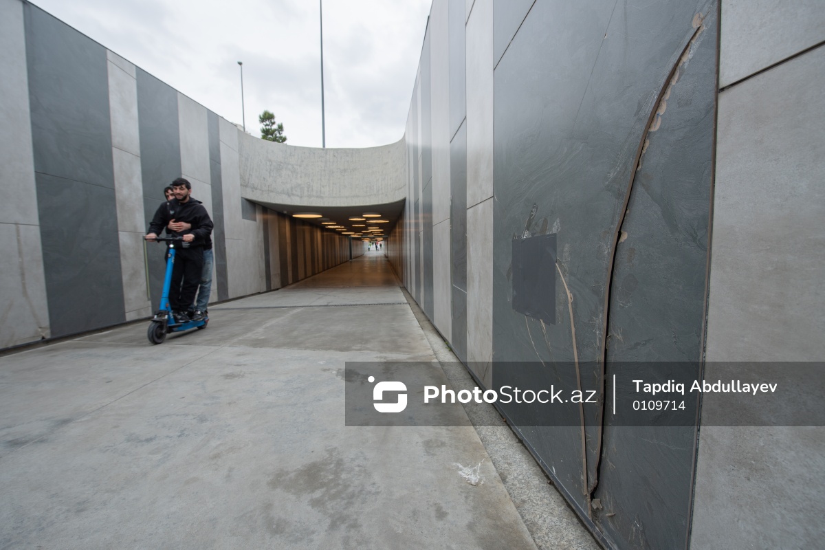Bakının Yasamal rayonunda yerləşən Mərkəzi Parkın birinci hissəsindəki yeraltı keçid baxımsız vəziyyətə düşüb. Hazırda keçidin divar və tavan hissələrində ciddi qopmalar və çatlar müşahidə olunur. Bəzi yerlərdə divar üzlüyündəki kafellər tamamilə sökülüb və bu hissələr müvəqqəti olaraq kağız və skoçla yamaqlanıb. Bu vəziyyət estetik görüntünü pozduğu ilə yanaşı, keçiddən istifadə edən vətəndaşlar üçün də təhlükəli vəziyyət yaradır. Ərazidə təmir işlərinə ehtiyac olduğu açıq-aşkardır və aidiyyəti qurumların məsələyə diqqət yetirməsi artıq zəruri hal alıb.