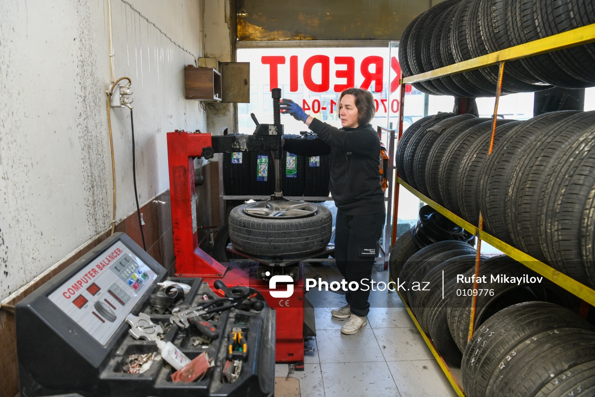 5 ildir təkər təmiri ustası işləyən Ülviyyə Əliyeva