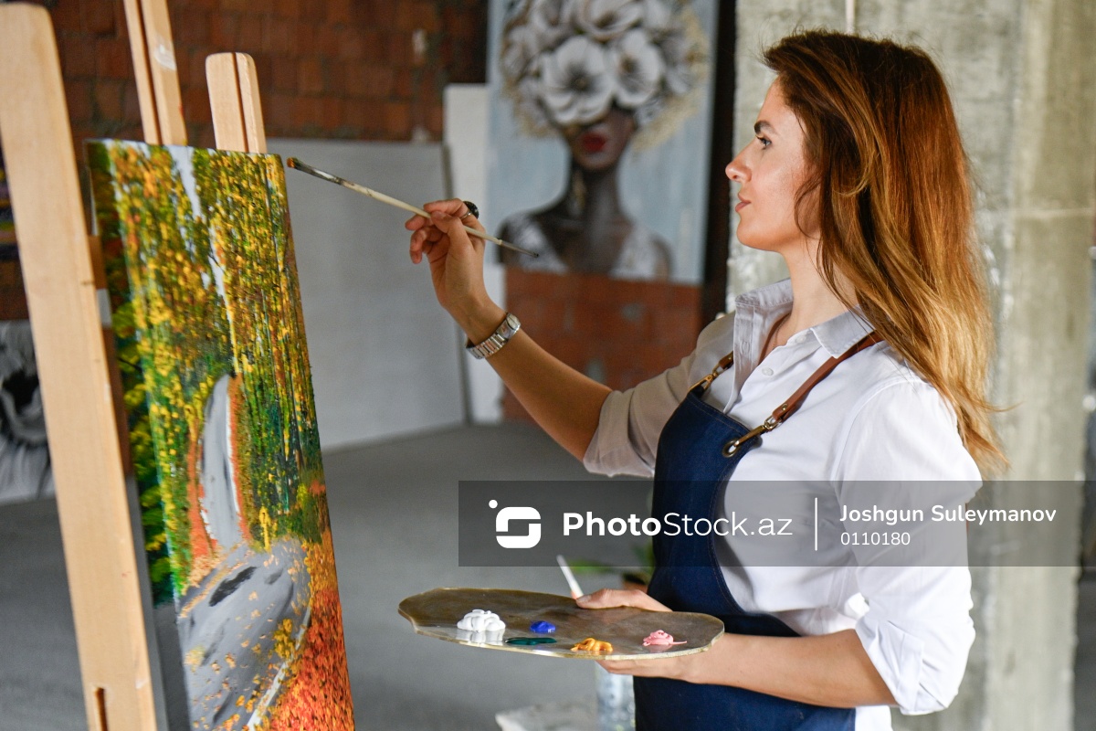 Fərqli materiallardan qeyri-adi rəsmlər ərsəyə gətirən Ülkər Məmmədova