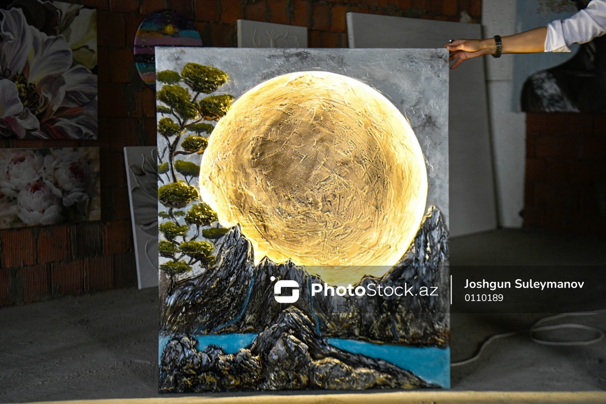 Fərqli materiallardan qeyri-adi rəsmlər ərsəyə gətirən Ülkər Məmmədova