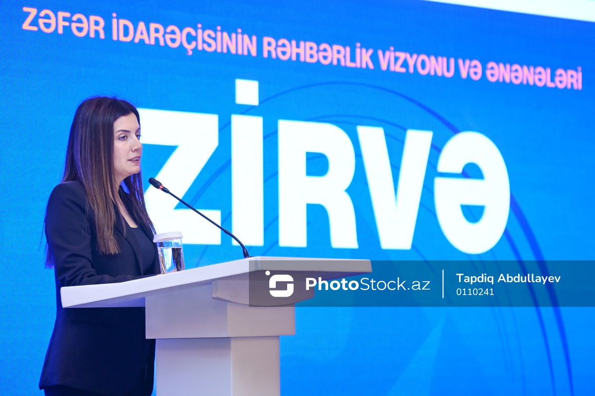 “Zirvə” idarəçilik marafonunun açılışında iştirak edən ASAN İnnovativ İnkişaf Mərkəzinin rəhbəri Aysel Cəbrayılova.