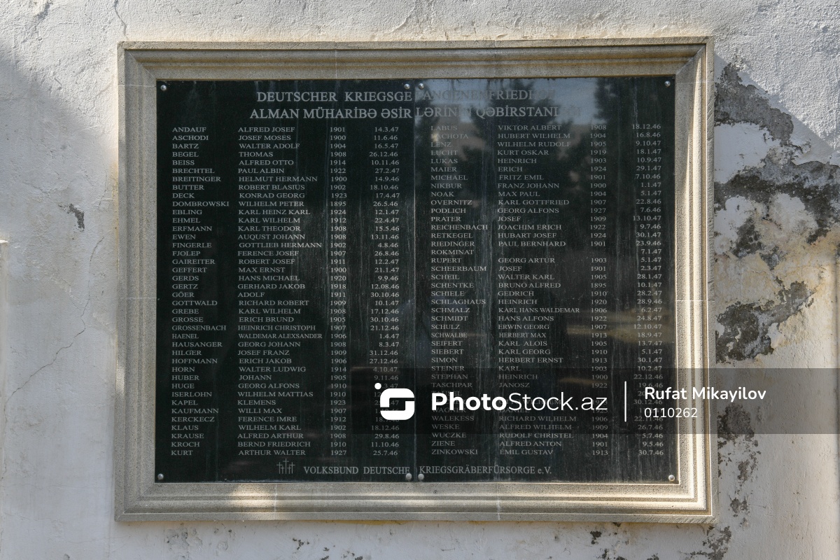 İkinci Dünya müharibəsi bitdikdən sonra Bakıya 42 min alman hərbi əsir gətirilib və onların əməyindən geniş istifadə olunub. Azərbaycanın müxtəlif bölgələrində o cümlədən Mingəçevirdə, Sumqayıtda, Saatlıda əsirlikdə ölən almanların qəbiristanlığı mövcuddur. Azərbaycanda saxlanılan və burada dünyasını dəyişən alman əsirlər həmin qəbiristanlıqlarda dəfn olunub. Bu qəbiristanlıqların biri də Bakı şəhərinin Yasamal rayonunda yerləşir. Qəbiristanlıq ərazisində qara xaç şəklində bir xatirə abidəsi yerləşir. Qara xaçın qarşısındakı lövhədə alman və azərbaycan dilində yazılar var. Alman dilində olan yazının tərcüməsi belədir: “Bakıda vəfat etmiş 163 hərbi əsirin xatirəsinə. Onlardan 142-si alman, 13-i macar, 8-i isə avstriyalıdır. Bu qəbiristanlıqda 80 əsir dəfn olunub. Onları və bütün müharibə qurbanlarını yad edin! 1945 – 1947”. Qəbiristanlıqdakı lövhədə dəfn edilən hərbi əsirlərin ad, soyadları, anadan olduqları və vəfat etdikləri tarixlər göstərilib.