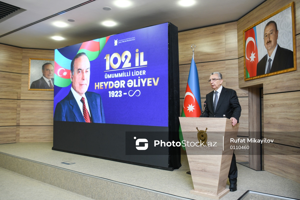 Ulu Öndər Heydər Əliyevin anadan olmasının 102-ci ildönümü münasibətilə keçirilən tədbirdə iştirak edən Bakı şəhər İcra Hakimiyyətinin başçısı Eldar Əzizov.