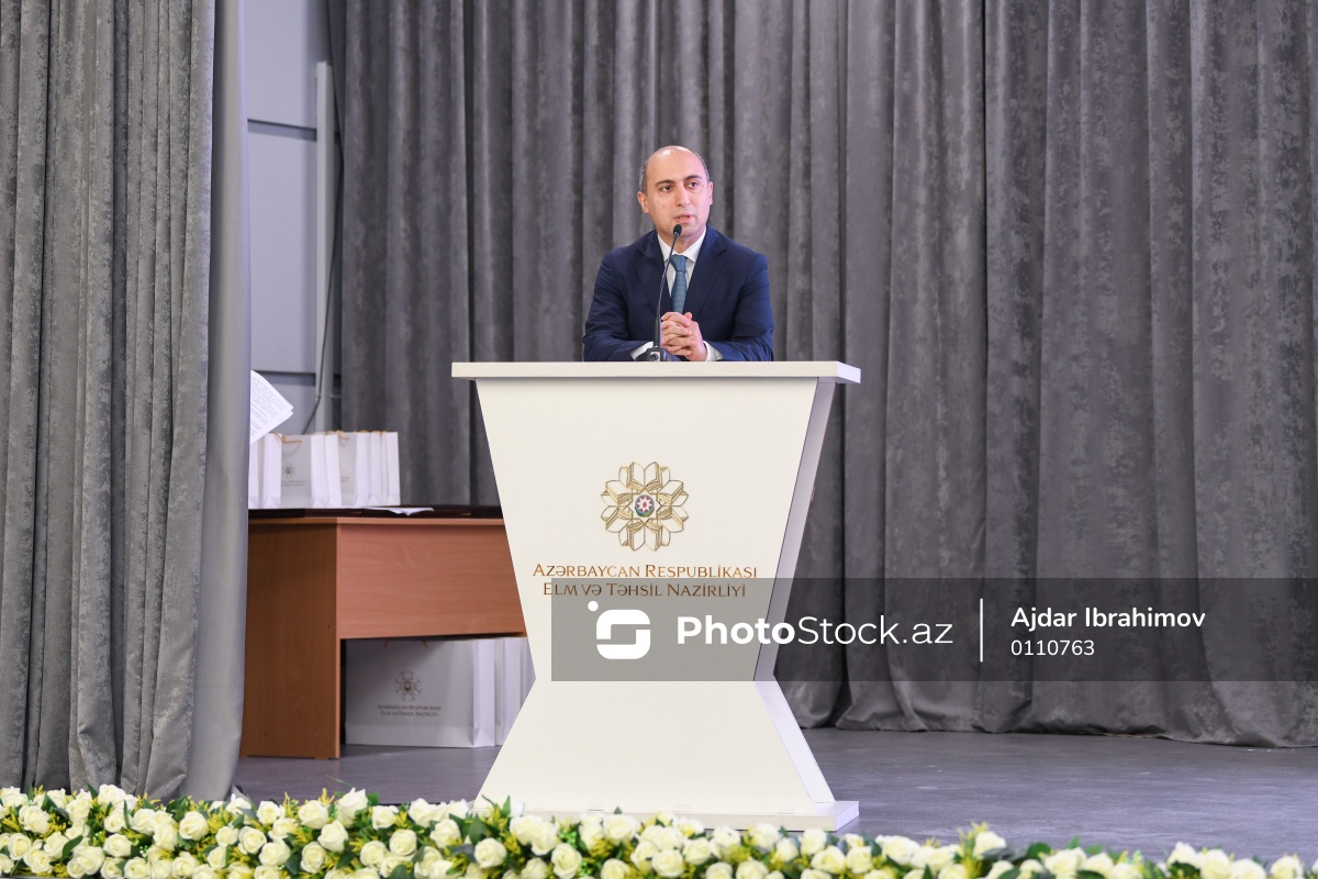 “Ən yaxşı təqdimat” müsabiqəsi qaliblərinin mükafatlandırılma mərasimində iştirak edən Azərbaycan Respublikasının elm və təhsil naziri Emin Əmrullayev.