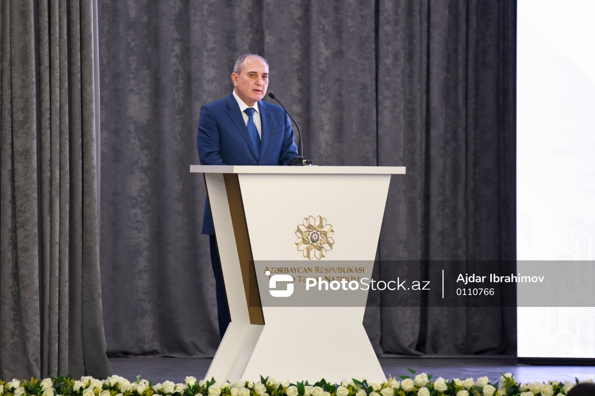 “Ən yaxşı təqdimat” müsabiqəsi qaliblərinin mükafatlandırılma mərasimində iştirak edən YAP sədrinin müavini, Mərkəzi Aparatın rəhbəri, Dövlət Statistika Komitəsinin sədri Tahir Budaqov.