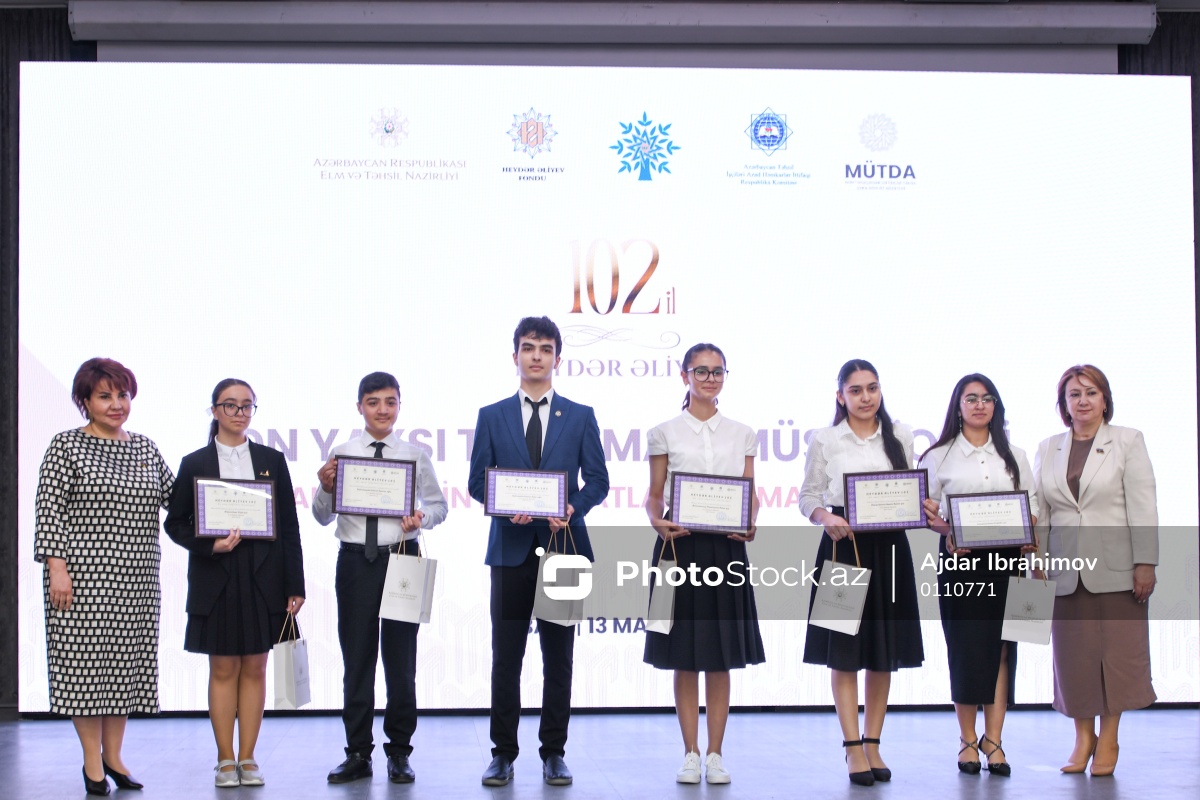 Mayın 13-də ümumi təhsil müəssisələrinin IX–XI sinif şagirdləri arasında keçirilən Ümummilli Lider Heydər Əliyevin 102-ci ildönümünə həsr olunmuş “Ən yaxşı təqdimat” müsabiqəsinin mükafatlandırılma mərasimi keçirilib. Müsabiqə Elm və Təhsil Nazirliyinin, Heydər Əliyev Fondunun, Yeni Azərbaycan Partiyasının, Azərbaycan Təhsil İşçiləri Azad Həmkarlar İttifaqı Respublika Komitəsinin birgə təşkilatçılığı ilə təşkil olunub. Tədbirdə Milli Məclisin sədrinin birinci müavini, Yeni Azərbaycan Partiyası sədrinin müavini Əli Əhmədov, elm və təhsil naziri Emin Əmrullayev, YAP sədrinin müavini, Mərkəzi Aparatın rəhbəri, Dövlət Statistika Komitəsinin sədri Tahir Budaqov çıxış ediblər. Sonda qaliblərin mükafatlandırılması mərasimi keçirilib. Səhnəyə dəvət olunan 35 qalibə diplomlar, hədiyyələr təqdim olunub və xatirə şəkli çəkdirilib.