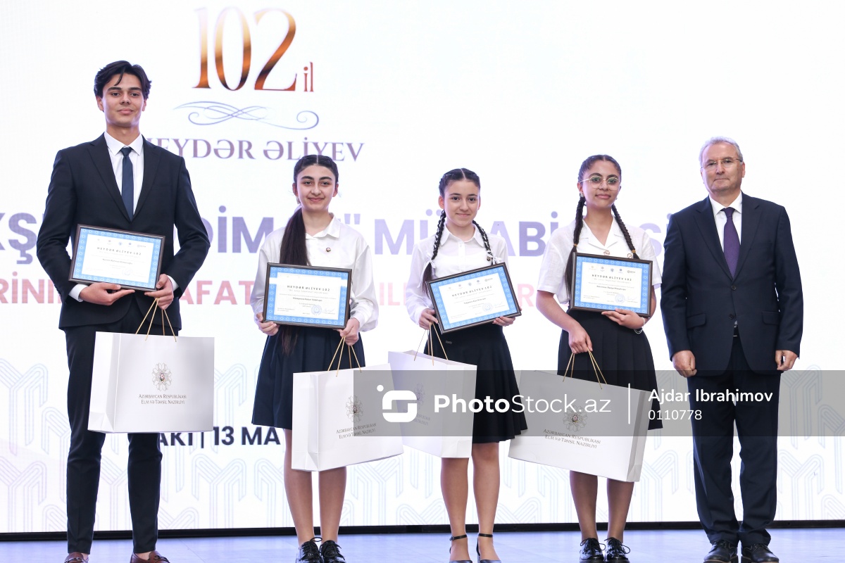Mayın 13-də ümumi təhsil müəssisələrinin IX–XI sinif şagirdləri arasında keçirilən Ümummilli Lider Heydər Əliyevin 102-ci ildönümünə həsr olunmuş “Ən yaxşı təqdimat” müsabiqəsinin mükafatlandırılma mərasimi keçirilib. Müsabiqə Elm və Təhsil Nazirliyinin, Heydər Əliyev Fondunun, Yeni Azərbaycan Partiyasının, Azərbaycan Təhsil İşçiləri Azad Həmkarlar İttifaqı Respublika Komitəsinin birgə təşkilatçılığı ilə təşkil olunub. Tədbirdə Milli Məclisin sədrinin birinci müavini, Yeni Azərbaycan Partiyası sədrinin müavini Əli Əhmədov, elm və təhsil naziri Emin Əmrullayev, YAP sədrinin müavini, Mərkəzi Aparatın rəhbəri, Dövlət Statistika Komitəsinin sədri Tahir Budaqov çıxış ediblər. Sonda qaliblərin mükafatlandırılması mərasimi keçirilib. Səhnəyə dəvət olunan 35 qalibə diplomlar, hədiyyələr təqdim olunub və xatirə şəkli çəkdirilib.