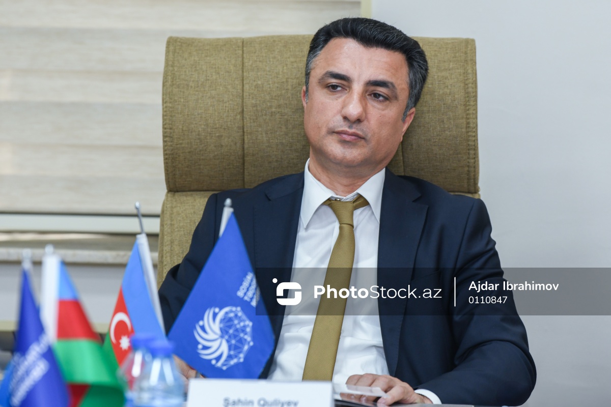 “Nəsillərarası həmrəylik ailə münasibətləri və dayanıqlı inkişaf kontekstində” mövzusunda dəyirmi masada iştirak edən Milli Məclisin Sosial Qanunvericilik şöbəsinin Humanitar məsələlər üzrə qanunvericilik sektorunun müdiri Şahin Quliyev.