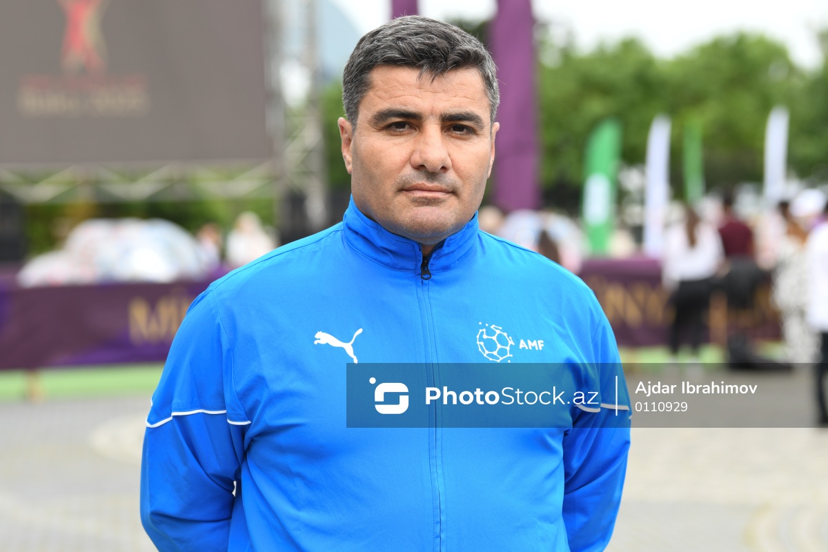 Bakıda keçiriləcək mundial ilə əlaqədar Dənizkənarı Bulvar ərazisində təşkil olunan “Fan Zona”da iştirak edən Azərbaycan minifutbol millisinin baş məşqçisi Elşad Quliyev.