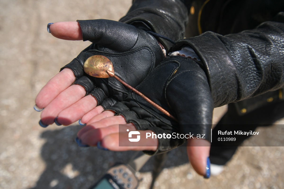 Metal detektoru ilə Xəzər sahilində dəyərli əşyalar axtaran Svetlana Kazımova