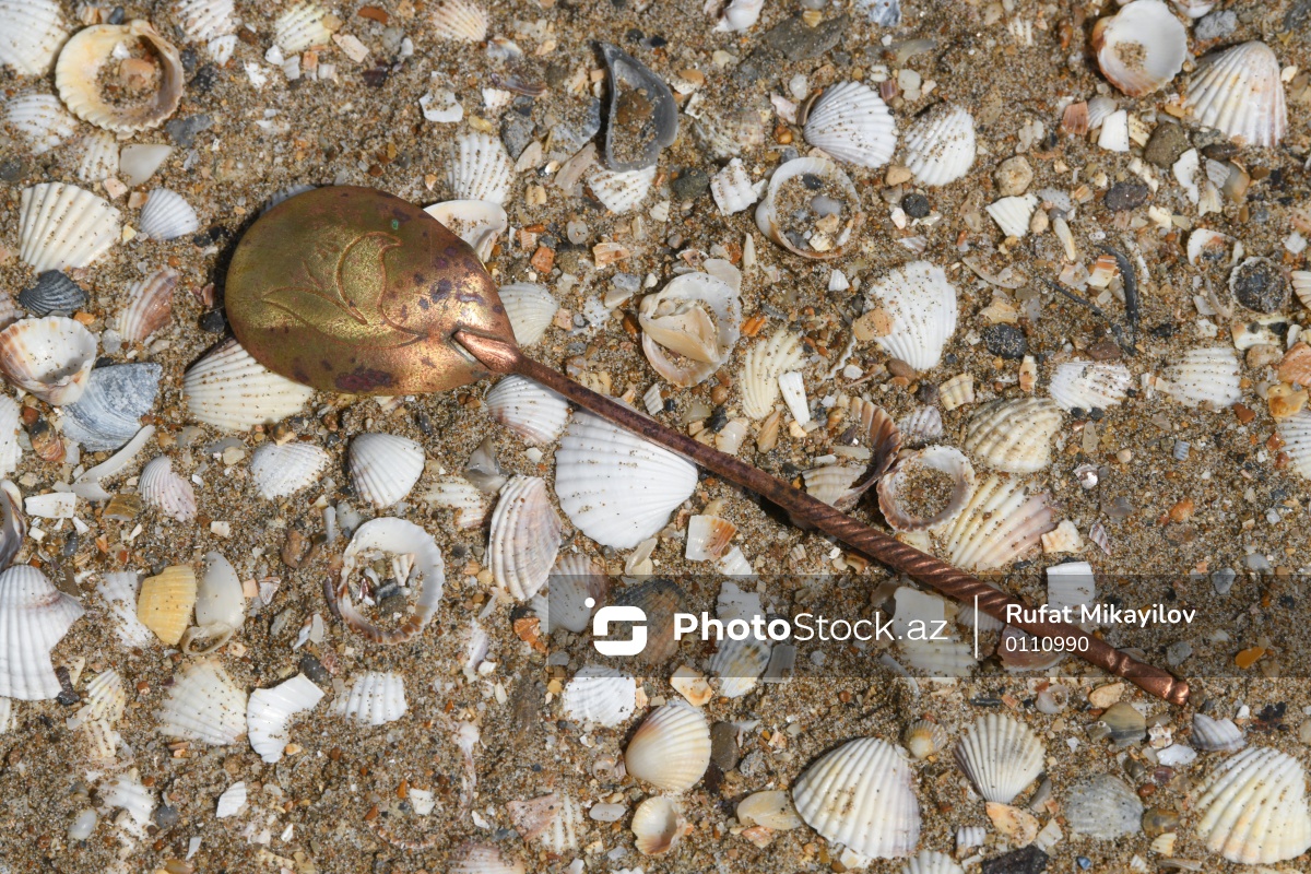 Metal detektoru ilə Xəzər sahilində dəyərli əşyalar axtaran Svetlana Kazımova