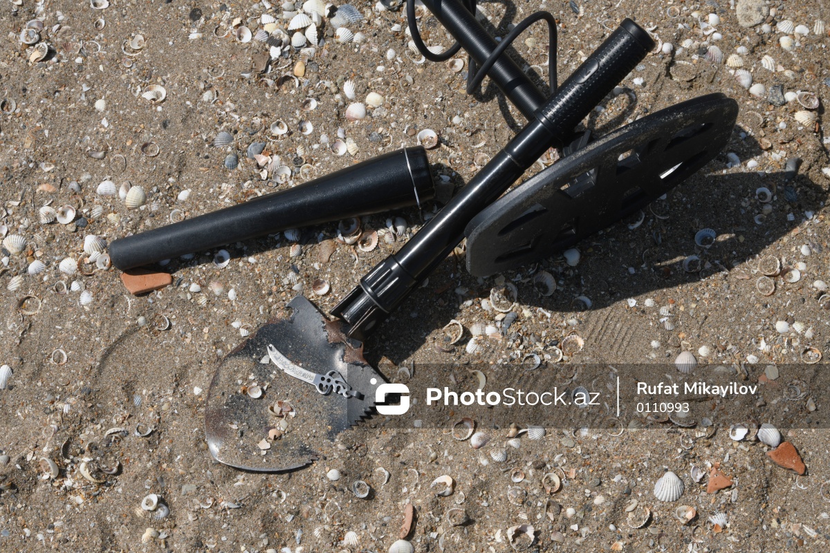 Metal detektoru ilə Xəzər sahilində dəyərli əşyalar axtaran Svetlana Kazımova