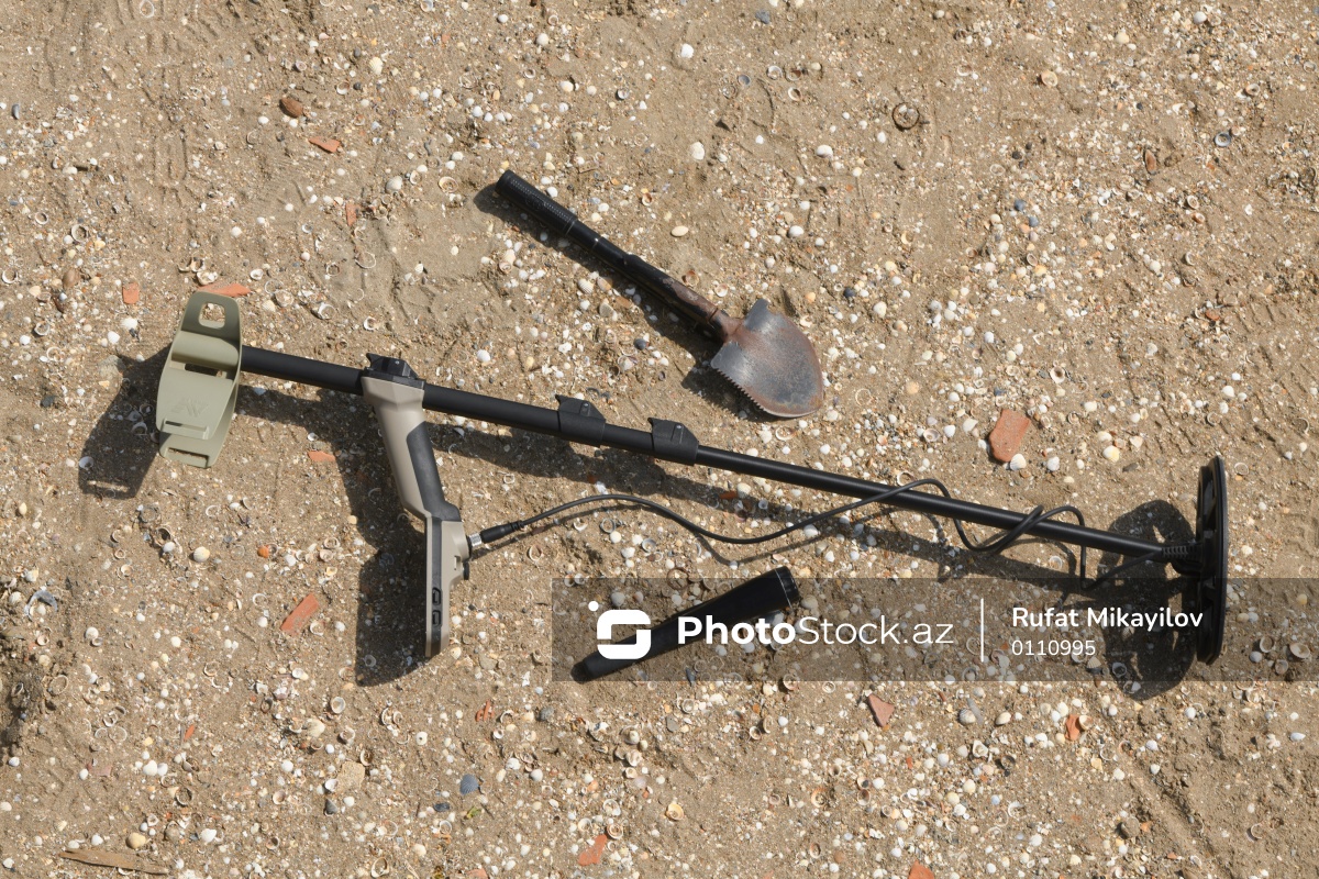 Metal detektoru ilə Xəzər sahilində dəyərli əşyalar axtaran Svetlana Kazımova