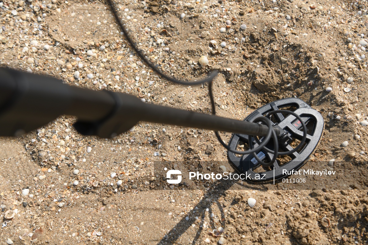 Metal detektoru ilə Xəzər sahilində dəyərli əşyalar axtaran Svetlana Kazımova