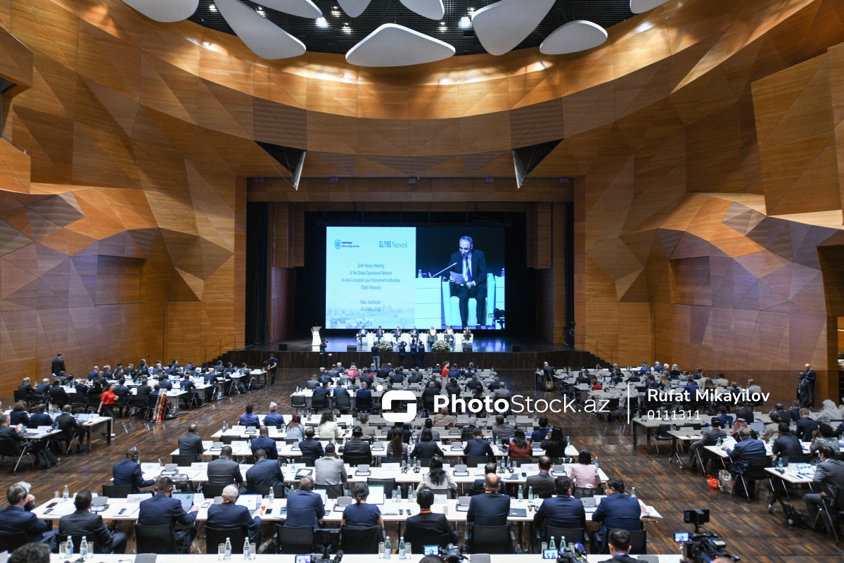 Bakıda BMT-nin Korrupsiyaya qarşı mübarizə aparan hüquq-mühafizə orqanlarının Qlobal Əməliyyatlar Şəbəkəsi – “GlobE Network” çərçivəsində altıncı plenar iclasın açılış mərasimi keçirilir. Tədbirin açılış mərasimində Prezident İlham Əliyevin “GlobE”nin VI Plenar İclasının iştirakçılarına müraciəti oxunub. Müraciəti Azərbaycan Respublikasının Baş prokuroru Kamran Əliyev təqdim edib. Tədbirdə 92 ölkədən 120-dən çox dövlət qurumu, o cümlədən 21 prokurorluq, 53 müstəqil antikorrupsiya qurumu və 16 beynəlxalq təşkilatdan- ümumilikdə 300-dən artıq nümayəndə fiziki, 60-dan artıq iştirakçı isə onlayn formatda iştirak edir. Tədbirdə həmçinin müxtəlif ölkələrin hüquq-mühafizə orqanlarını təmsil edən 50-yə yaxın rəhbər vəzifəli şəxslər iştirak edir. Əsas mövzusu “Korrupsiyaya qarşı mübarizədə yeni texnologiyalar və süni intellektin tətbiqi imkanları” olan plenar iclasda korrupsiya nəticəsində əldə edilmiş vəsaitlərin müsadirəsi, əldə edilmiş aktivlərin birbaşa bərpası, maliyyə əməliyyatlarında şübhəli əməliyyatların dayandırılması, cinayət prosesində bank hesablarının sürətli dondurulması üzrə beynəlxalq əməkdaşlıq, korrupsiyaya qarşı mübarizədə ictimai maarifləndirmə və digər alt mövzular üzrə panel, sessiya və paralel tədbirlərdə 100-dən artıq çıxış nəzərdə tutulur.