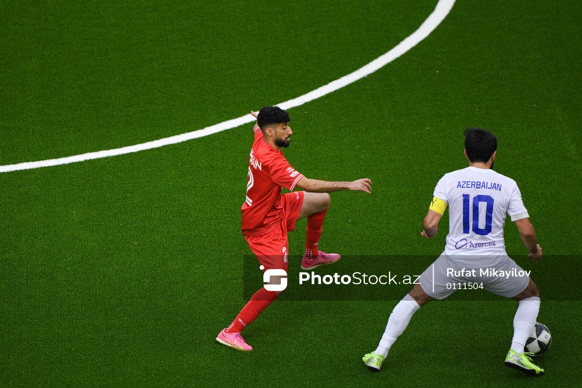 21.05.2025 Milli Gimnastika Arenası, Minifutbol üzrə Dünya Çempionatının Azərbaycan – Bəhreyn oyunununda Bəhreyn Minifutbol millisinin oyunçusu Ali Alaraibi (sol), Azərbaycan Minifutbol millisinin oyunçusu Elvin Alizada (sağ) mübarizəsi.