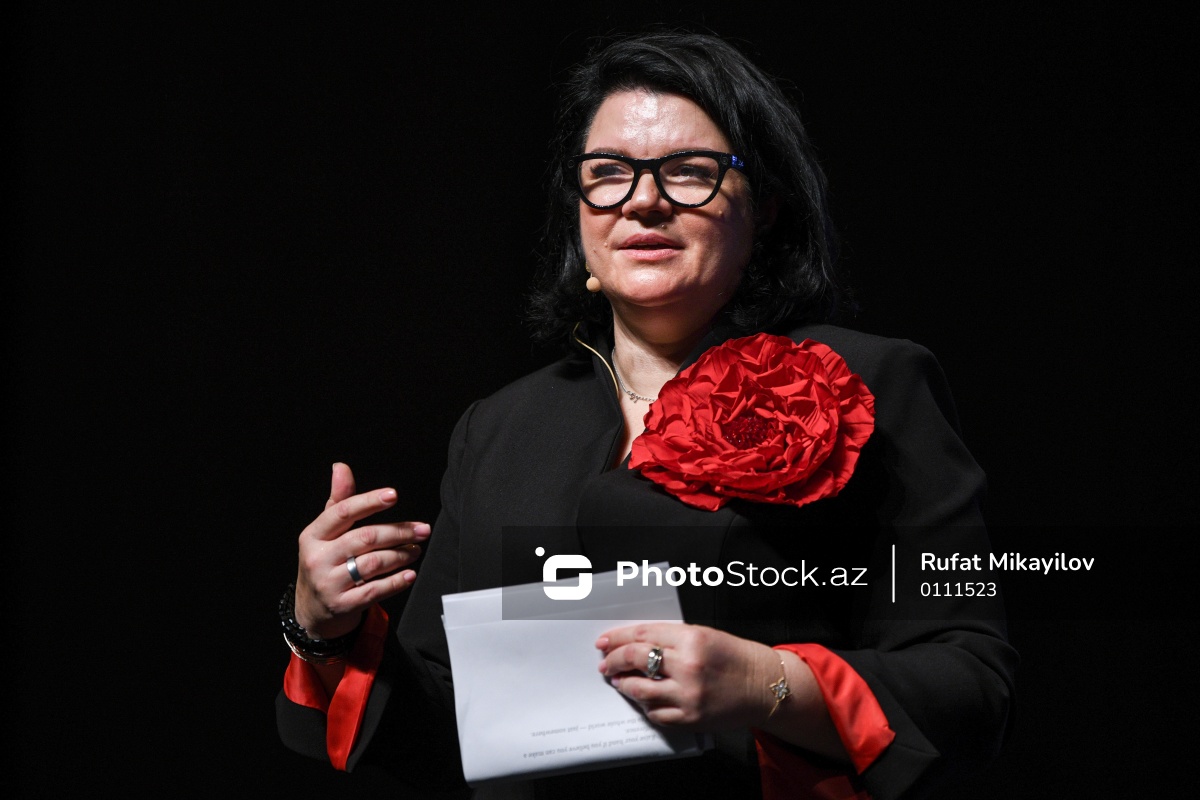 Bakıda keçirilən “SHE Congress 2025” tədbirində iştirak edən "SHE Congress"inin təsisçisi, sahibkar Tatyana Mikayılova.