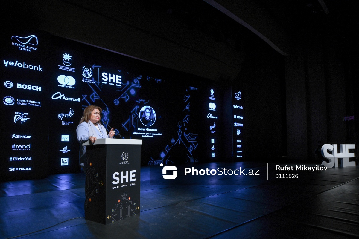 Bakıda keçirilən “SHE Congress 2025” tədbirində iştirak edən Milli Məclisin Ailə, qadın və uşaq məsələləri komitəsinin sədri, deputat Hicran Hüseynova.