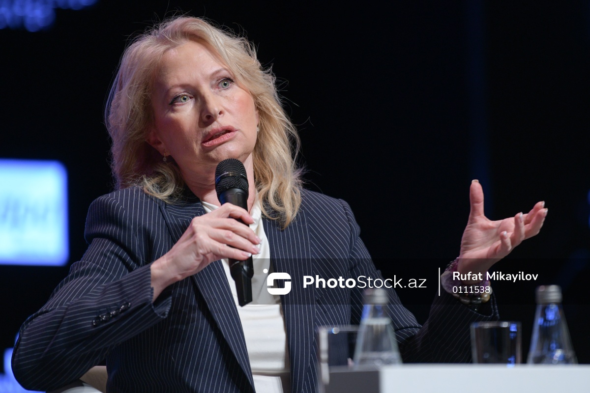 Bakıda keçirilən “SHE Congress 2025” tədbirində iştirak edən Gürcüstan Milli Bankının sədri Natia Turnava.