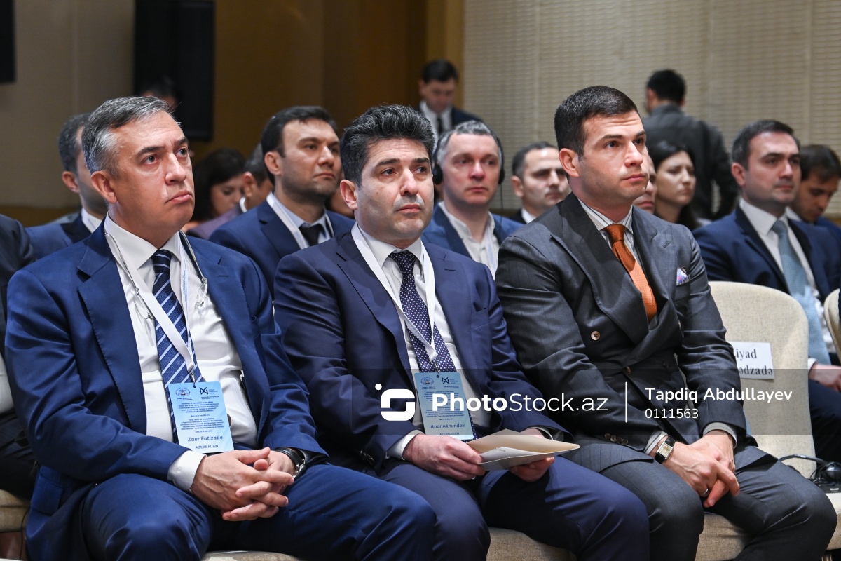 “Konstitusiya və Suverenlik ili”nə həsr edilmiş beynəlxalq konfransda iştirak edən (soldan-sağa) Maliyyə Monitorinq Xidmətinin İdarə Heyətinin sədri Zaur Fətizadə, Azərbaycan Respublikası iqtisadiyyat nazirinin müavini Anar Axundov, İqtisadiyyat Nazirliyi yanında Kiçik və Orta Biznesin İnkişafı Agentliyinin (KOBİA) İdarə Heyətinin sədri Orxan Məmmədov.