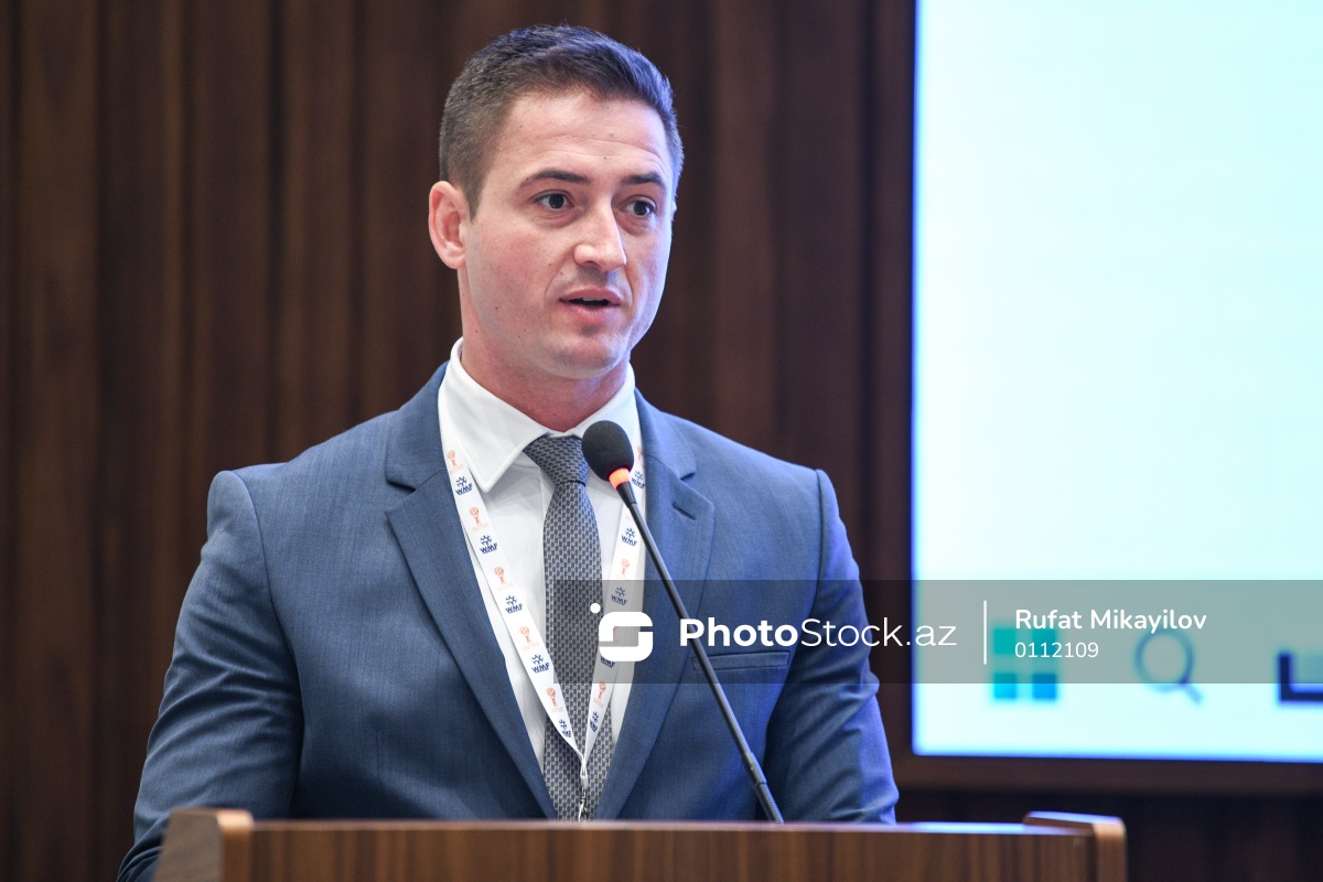 Bakıda keçirilən Dünya Minifutbol Federasiyasının Baş Assambleyasının iclasında iştirak edən Dünya Minifutbol Federasiyasının vitse-prezidenti Peter Kralik.