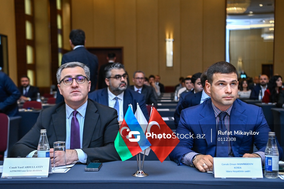 TÜİB-in VI Dönəm Seçkili Ümumi Yığıncağında iştirak edən Azərbaycan Respubikasının İxracın və İnvestisiyaların Təşviqi Agentliyinin İcraçı direktoru Yusif Abdullayev (sol), Kiçik və Orta Biznesin İnkişafı Agentliyinin (KOBİA) İdarə Heyətinin sədri Orxan Məmmədov (sağ).