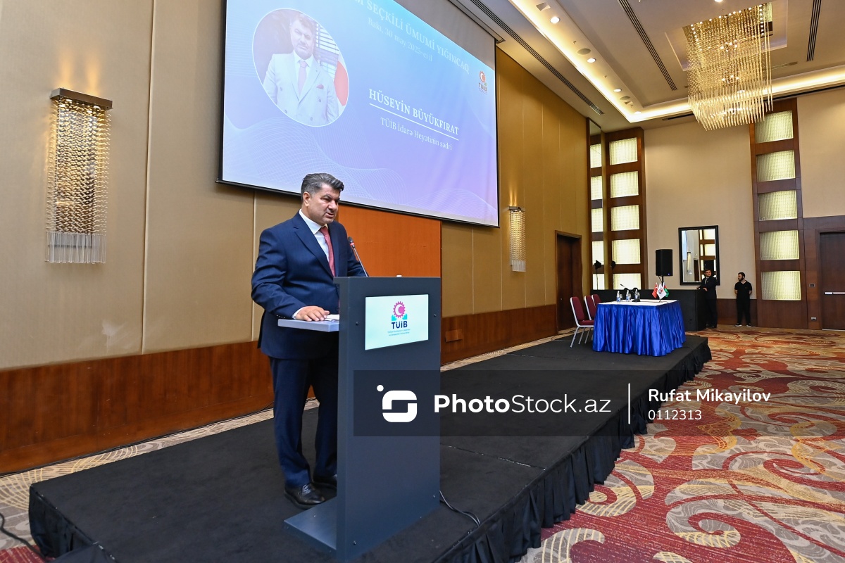 TÜİB-in VI Dönəm Seçkili Ümumi Yığıncağında iştirak edən TÜİB-in İdarə Heyətinin sədri Hüseyin Büyükfırat.