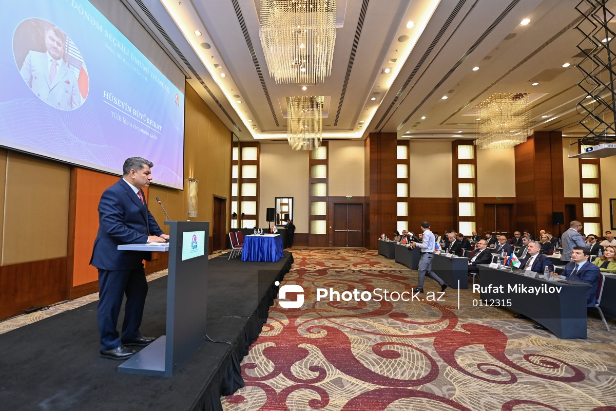 TÜİB-in VI Dönəm Seçkili Ümumi Yığıncağında iştirak edən TÜİB-in İdarə Heyətinin sədri Hüseyin Büyükfırat.