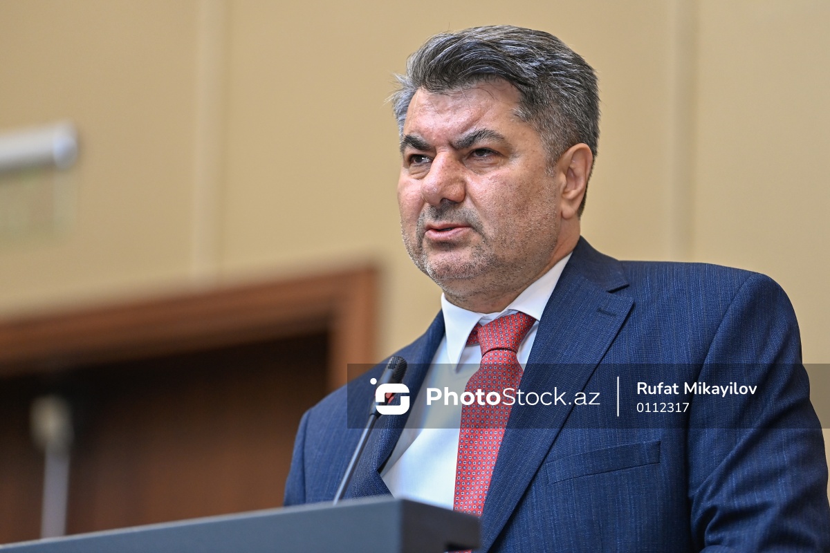 TÜİB-in VI Dönəm Seçkili Ümumi Yığıncağında iştirak edən TÜİB-in İdarə Heyətinin sədri Hüseyin Büyükfırat.
