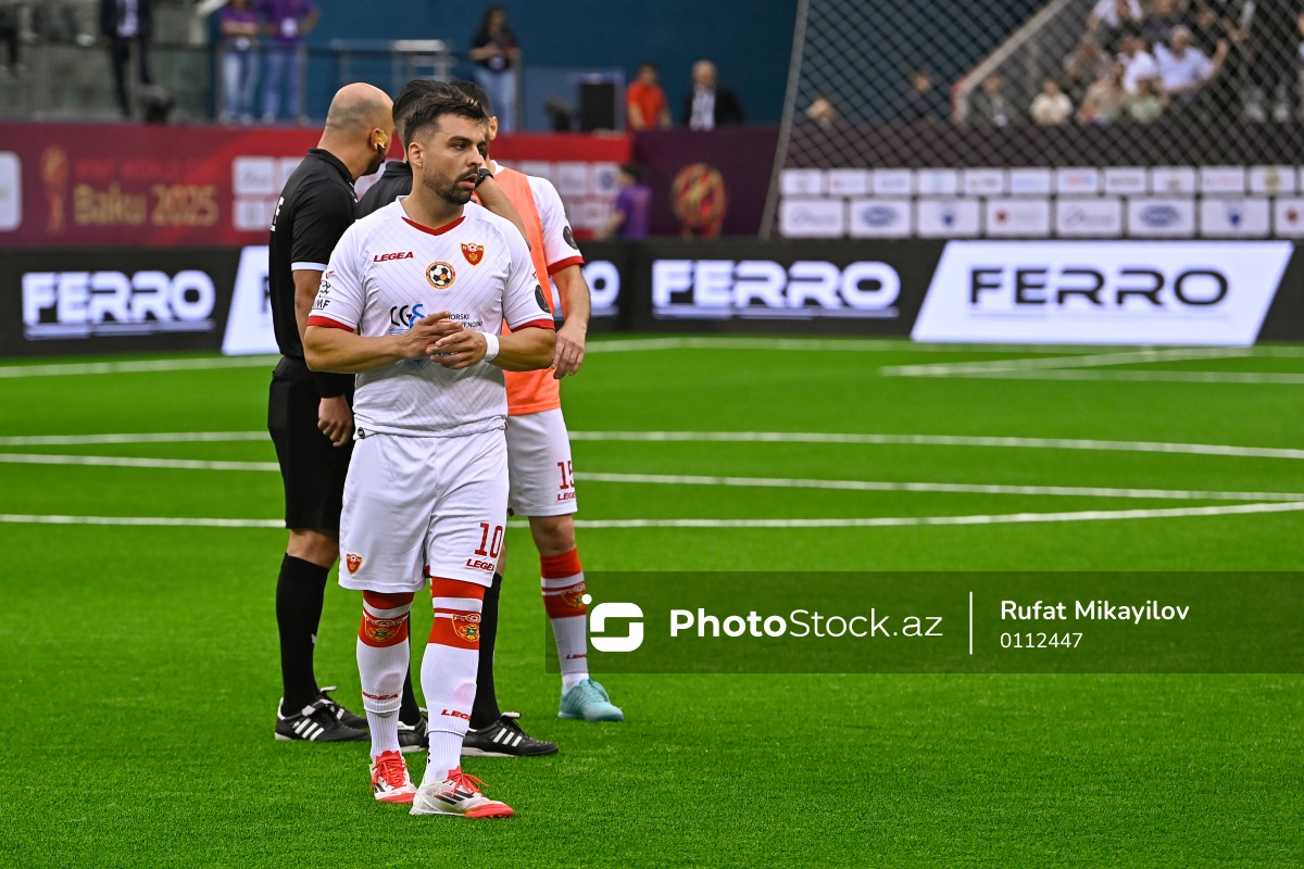 30.05.2025 Milli Gimnastika Arenası, Minifutbol üzrə Dünya Çempionatının Azərbaycan – Monteneqro oyunununda Monteneqro Minifutbol millisinin oyunçusu Zsombor Kövesdi.