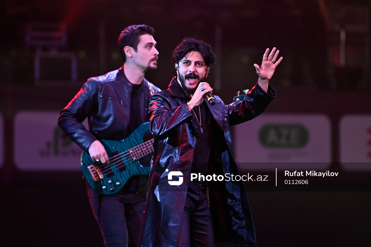 Bakıda keçirilən minifutbol üzrə dünya çempionatının bağlanış mərasimində çıxış edən müğənni Mərdan Kazımov.