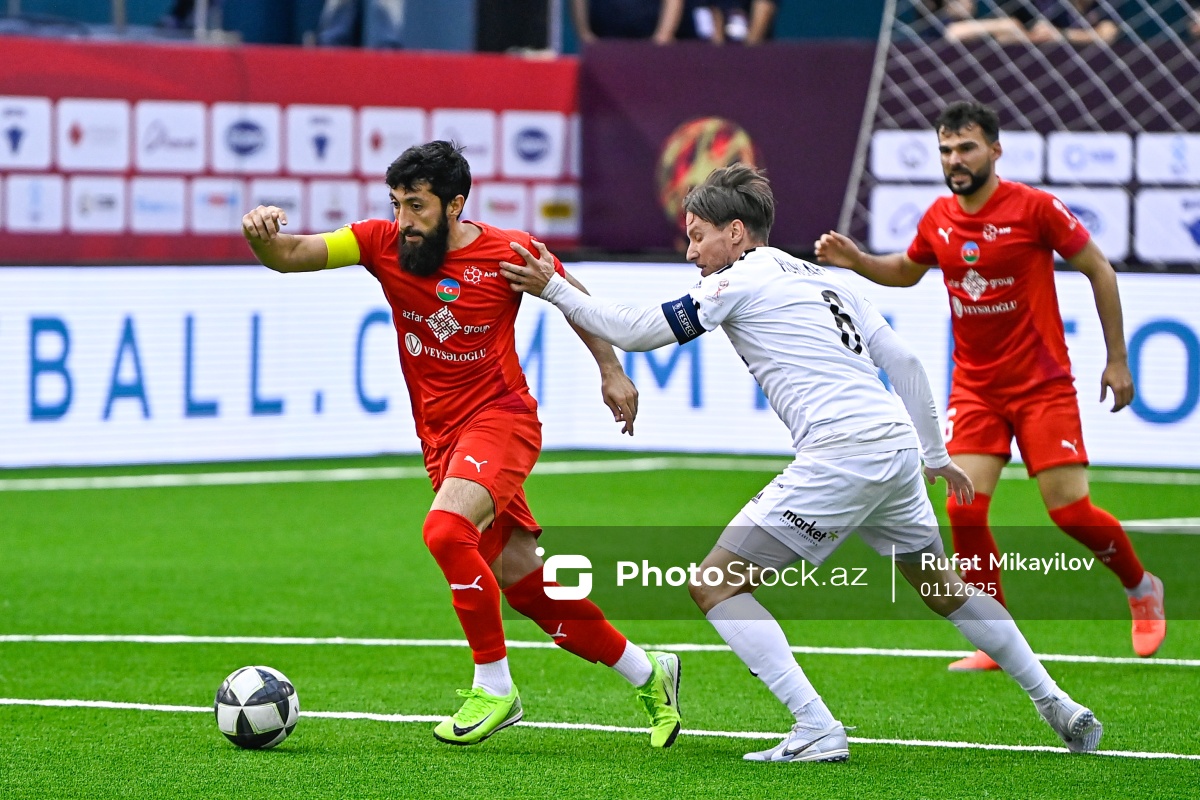 01.06.2025 Milli Gimnastika Arenası, Minifutbol üzrə Dünya Çempionatının Azərbaycan – Macarıstan oyunununda (soldan-sağa) Azərbaycan Minifutbol millisinin oyunçusu Elvin Alizada (sol), Macarıstan Minifutbol millisinin oyunçusu Miklos Barabas (sağ) mübarizəsi.