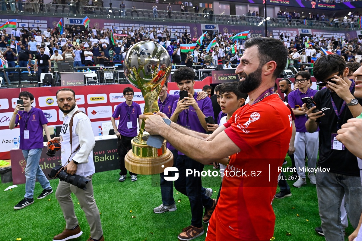 Bakıda təşkil olunan minifutbol üzrə dünya çempionatının mükafatlandırma mərasimi keçirilib. Milli Gimnastika Arenasında baş tutan tədbirdə Dünya Minifutbol Federasiyasının prezidenti Filip Juda, vitse-prezidenti Peter Kralik, gənclər və idman naziri Fərid Qayıbov və digər rəsmi şəxslər iştirak ediblər. Açılışda ön sözlə çıxış edən Fərid Qayıbov mundialın ölkəmizdə yüksək səviyyədə təşkil olunmasından danışıb və qələbə münasibəti ilə Azərbaycan xalqını təbrik edib. Daha sonra mundialın qalibi olan Azərbaycan yığması qızıl medal və kubokla təltif edilib. İkinci yerin sahibi olan Macarıstan futbolçuları gümüş, üçüncü olan Serbiya komandası isə bürünc medallarla mükafatlandırılıb.