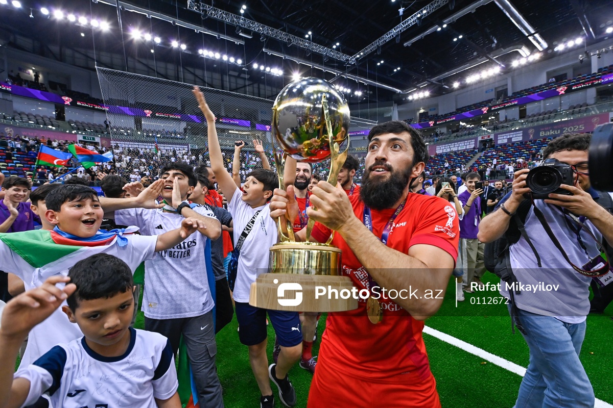 Bakıda təşkil olunan minifutbol üzrə dünya çempionatının mükafatlandırma mərasimi keçirilib. Milli Gimnastika Arenasında baş tutan tədbirdə Dünya Minifutbol Federasiyasının prezidenti Filip Juda, vitse-prezidenti Peter Kralik, gənclər və idman naziri Fərid Qayıbov və digər rəsmi şəxslər iştirak ediblər. Açılışda ön sözlə çıxış edən Fərid Qayıbov mundialın ölkəmizdə yüksək səviyyədə təşkil olunmasından danışıb və qələbə münasibəti ilə Azərbaycan xalqını təbrik edib. Daha sonra mundialın qalibi olan Azərbaycan yığması qızıl medal və kubokla təltif edilib. İkinci yerin sahibi olan Macarıstan futbolçuları gümüş, üçüncü olan Serbiya komandası isə bürünc medallarla mükafatlandırılıb.