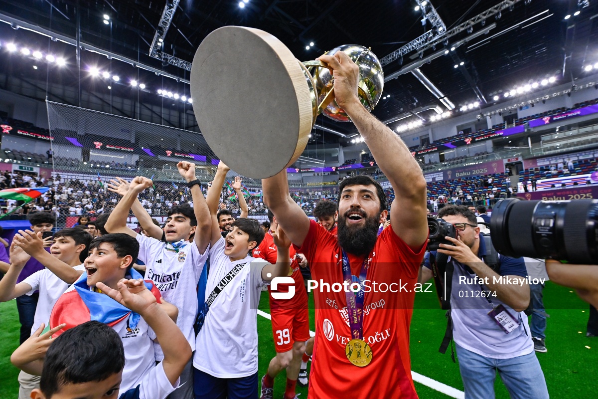 Bakıda təşkil olunan minifutbol üzrə dünya çempionatının mükafatlandırma mərasimi keçirilib. Milli Gimnastika Arenasında baş tutan tədbirdə Dünya Minifutbol Federasiyasının prezidenti Filip Juda, vitse-prezidenti Peter Kralik, gənclər və idman naziri Fərid Qayıbov və digər rəsmi şəxslər iştirak ediblər. Açılışda ön sözlə çıxış edən Fərid Qayıbov mundialın ölkəmizdə yüksək səviyyədə təşkil olunmasından danışıb və qələbə münasibəti ilə Azərbaycan xalqını təbrik edib. Daha sonra mundialın qalibi olan Azərbaycan yığması qızıl medal və kubokla təltif edilib. İkinci yerin sahibi olan Macarıstan futbolçuları gümüş, üçüncü olan Serbiya komandası isə bürünc medallarla mükafatlandırılıb.