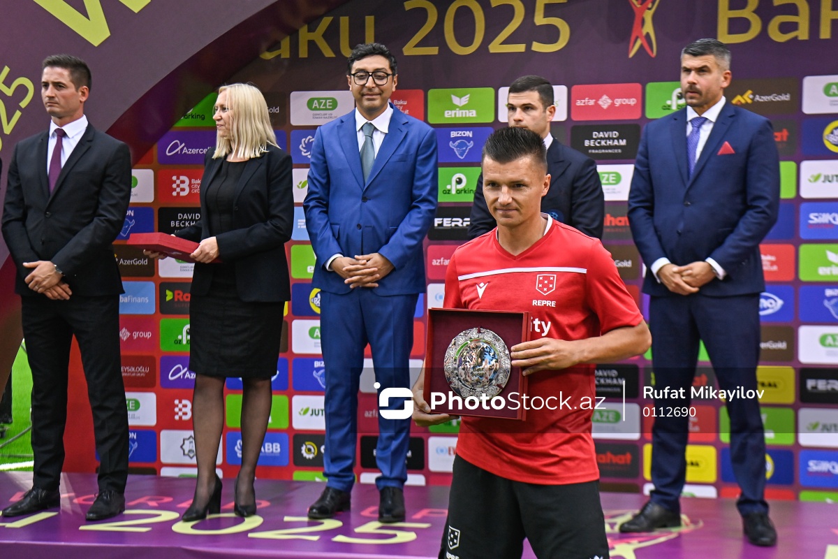 Bakıda təşkil olunan minifutbol üzrə dünya çempionatının mükafatlandırma mərasimi keçirilib. Milli Gimnastika Arenasında baş tutan tədbirdə Dünya Minifutbol Federasiyasının prezidenti Filip Juda, vitse-prezidenti Peter Kralik, gənclər və idman naziri Fərid Qayıbov və digər rəsmi şəxslər iştirak ediblər. Açılışda ön sözlə çıxış edən Fərid Qayıbov mundialın ölkəmizdə yüksək səviyyədə təşkil olunmasından danışıb və qələbə münasibəti ilə Azərbaycan xalqını təbrik edib. Daha sonra mundialın qalibi olan Azərbaycan yığması qızıl medal və kubokla təltif edilib. İkinci yerin sahibi olan Macarıstan futbolçuları gümüş, üçüncü olan Serbiya komandası isə bürünc medallarla mükafatlandırılıb.