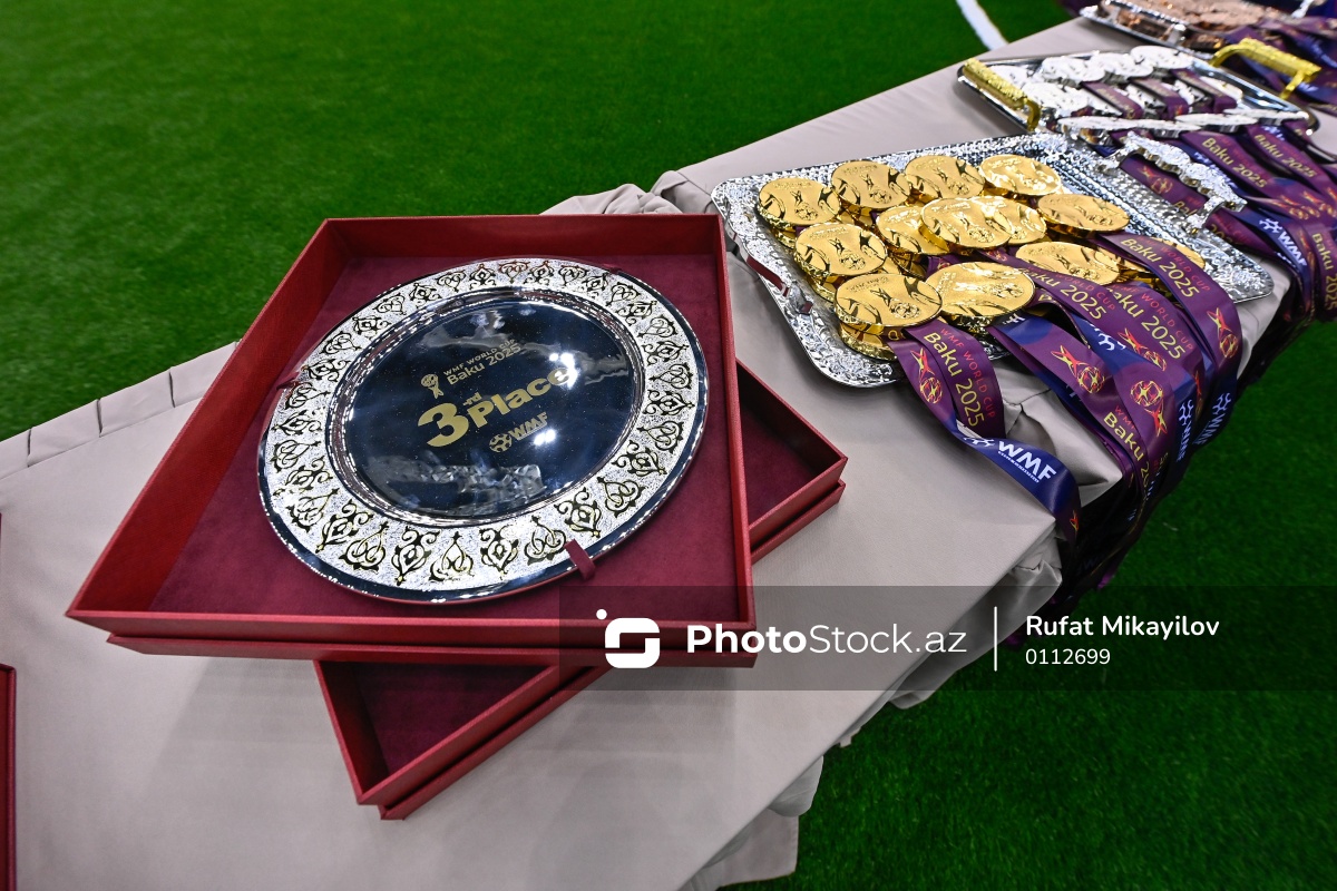 Bakıda təşkil olunan minifutbol üzrə dünya çempionatının mükafatlandırma mərasimi keçirilib. Milli Gimnastika Arenasında baş tutan tədbirdə Dünya Minifutbol Federasiyasının prezidenti Filip Juda, vitse-prezidenti Peter Kralik, gənclər və idman naziri Fərid Qayıbov və digər rəsmi şəxslər iştirak ediblər. Açılışda ön sözlə çıxış edən Fərid Qayıbov mundialın ölkəmizdə yüksək səviyyədə təşkil olunmasından danışıb və qələbə münasibəti ilə Azərbaycan xalqını təbrik edib. Daha sonra mundialın qalibi olan Azərbaycan yığması qızıl medal və kubokla təltif edilib. İkinci yerin sahibi olan Macarıstan futbolçuları gümüş, üçüncü olan Serbiya komandası isə bürünc medallarla mükafatlandırılıb.