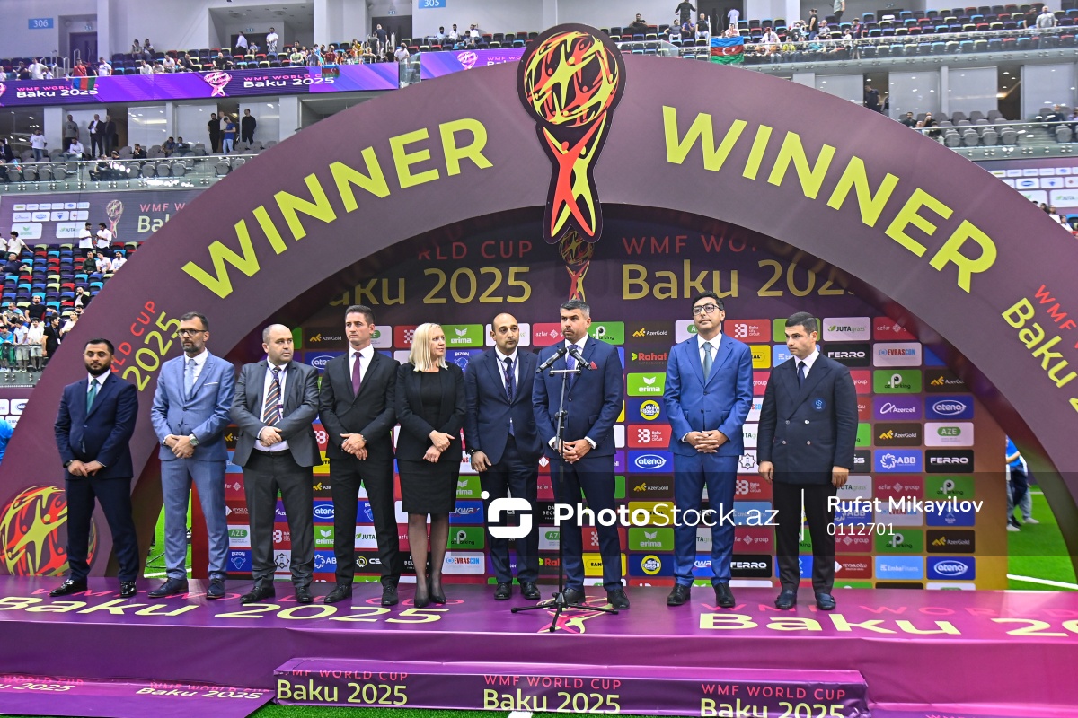 Bakıda təşkil olunan minifutbol üzrə dünya çempionatının mükafatlandırma mərasimi keçirilib. Milli Gimnastika Arenasında baş tutan tədbirdə Dünya Minifutbol Federasiyasının prezidenti Filip Juda, vitse-prezidenti Peter Kralik, gənclər və idman naziri Fərid Qayıbov və digər rəsmi şəxslər iştirak ediblər. Açılışda ön sözlə çıxış edən Fərid Qayıbov mundialın ölkəmizdə yüksək səviyyədə təşkil olunmasından danışıb və qələbə münasibəti ilə Azərbaycan xalqını təbrik edib. Daha sonra mundialın qalibi olan Azərbaycan yığması qızıl medal və kubokla təltif edilib. İkinci yerin sahibi olan Macarıstan futbolçuları gümüş, üçüncü olan Serbiya komandası isə bürünc medallarla mükafatlandırılıb.