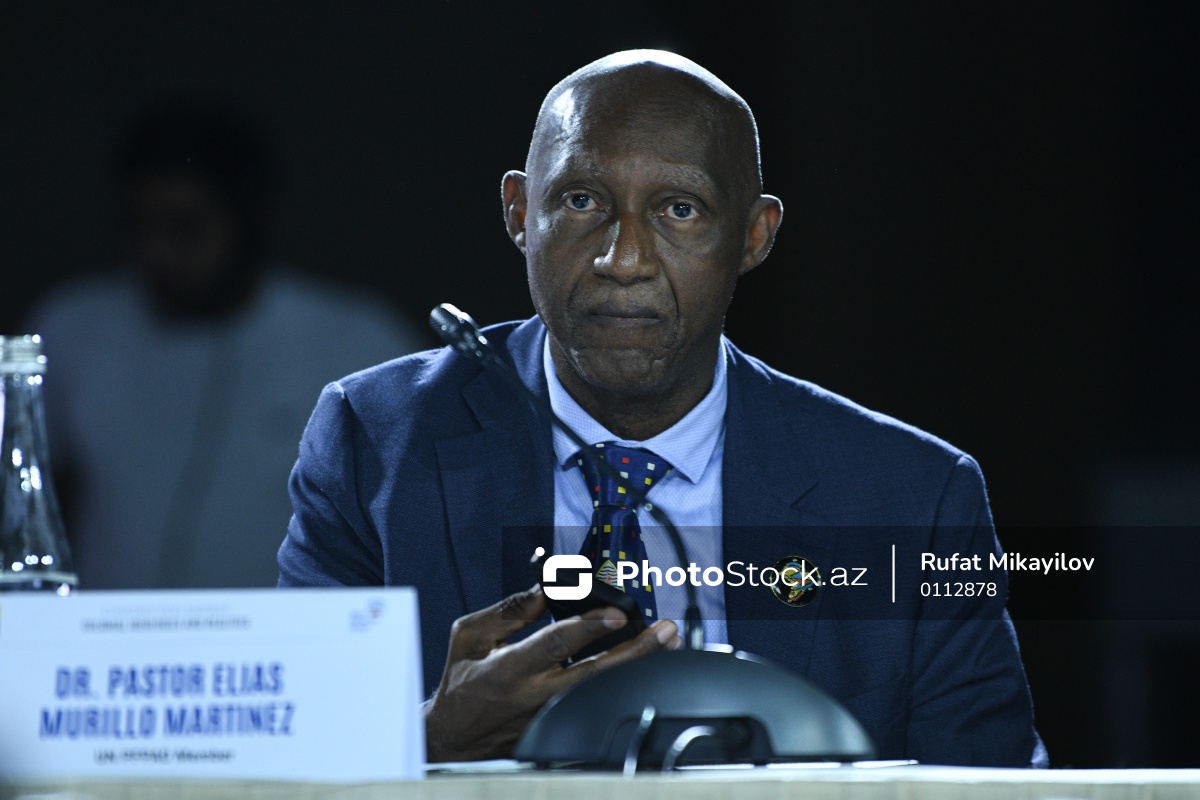 Fransa kolonializminə həsr olunmuş beynəlxalq konfransda iştirak edən BMT-nin Afrika xalqlarının Daimi Forumunun Kolumbiyadan olan üzvü Pastor Martinez.