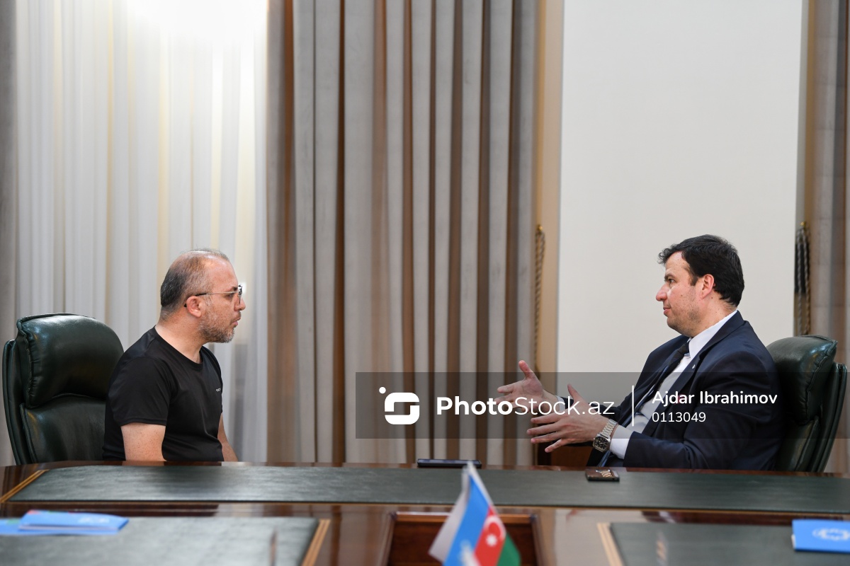 Müxbir Elçin Aslangil (sol), Türkiyə Politik və Strateji Araşdırmalar Vəqfinin İdarə Heyətinin sədri Sinan Demirtürk (sağ).