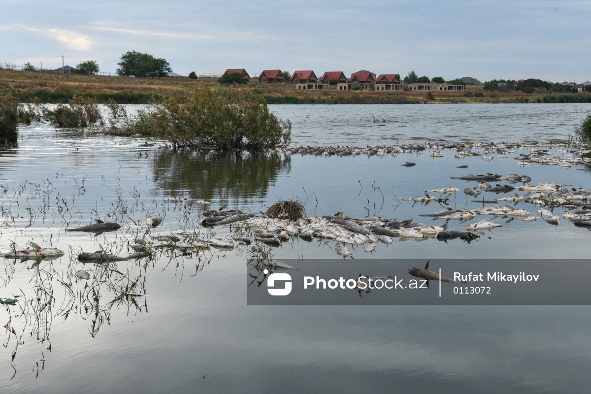 Abşeron rayonu Məhəmmədi kəndində yerləşən göldə balıqlar tələf olub