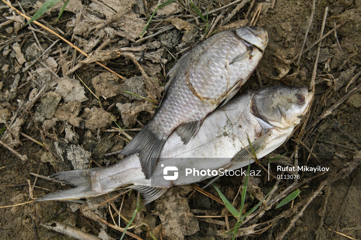 Abşeron rayonu Məhəmmədi kəndində yerləşən göldə balıqlar tələf olub